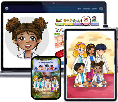 - References and Links to the sections within the Why Does My Tummy Hurt Cartoon Flip Book and Animated Movie in which the Happy Tummy Team present the information contained within such Module.